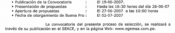6. Por su parte, el numeral 3.2 de las Bases estableció que la presentación de propuestas se realizaría el 26 de junio de 2007 hasta las 16:30 horas.